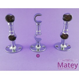 SOPORTE CAZUELA CENTRAL COLOR CROMO PARA DOS TUBOS DE 13 MM, HECHO EN INYECCION DE ZAMAK CON PINTURA CROMO AL HORNO, CON MEDIDA DE ALTO 87 MM, POSTE 11 MM Y BASE 42 MM DE DIAMETRO.