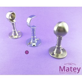 SOPORTE CAZUELA LARGO CENTRAL EN COLOR SATINADO PARA TUBO DE 25 MM, CON MEDIDA DE ALTO 80 MM, POSTE 10 MM Y BASE 43 MM DE DIAMETRO. MEDIDAS APROXIMADAS.
