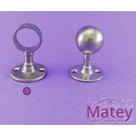 SOPORTE CENTRAL CORTO COLOR SATINADO PARA TUBO DE 25 MM, HECHO EN ZAMAK, CON MEDIDA DE ALTO 60 MM, POSTE DE 9 MM Y BASE DE 43 MM DE DIAMETRO.